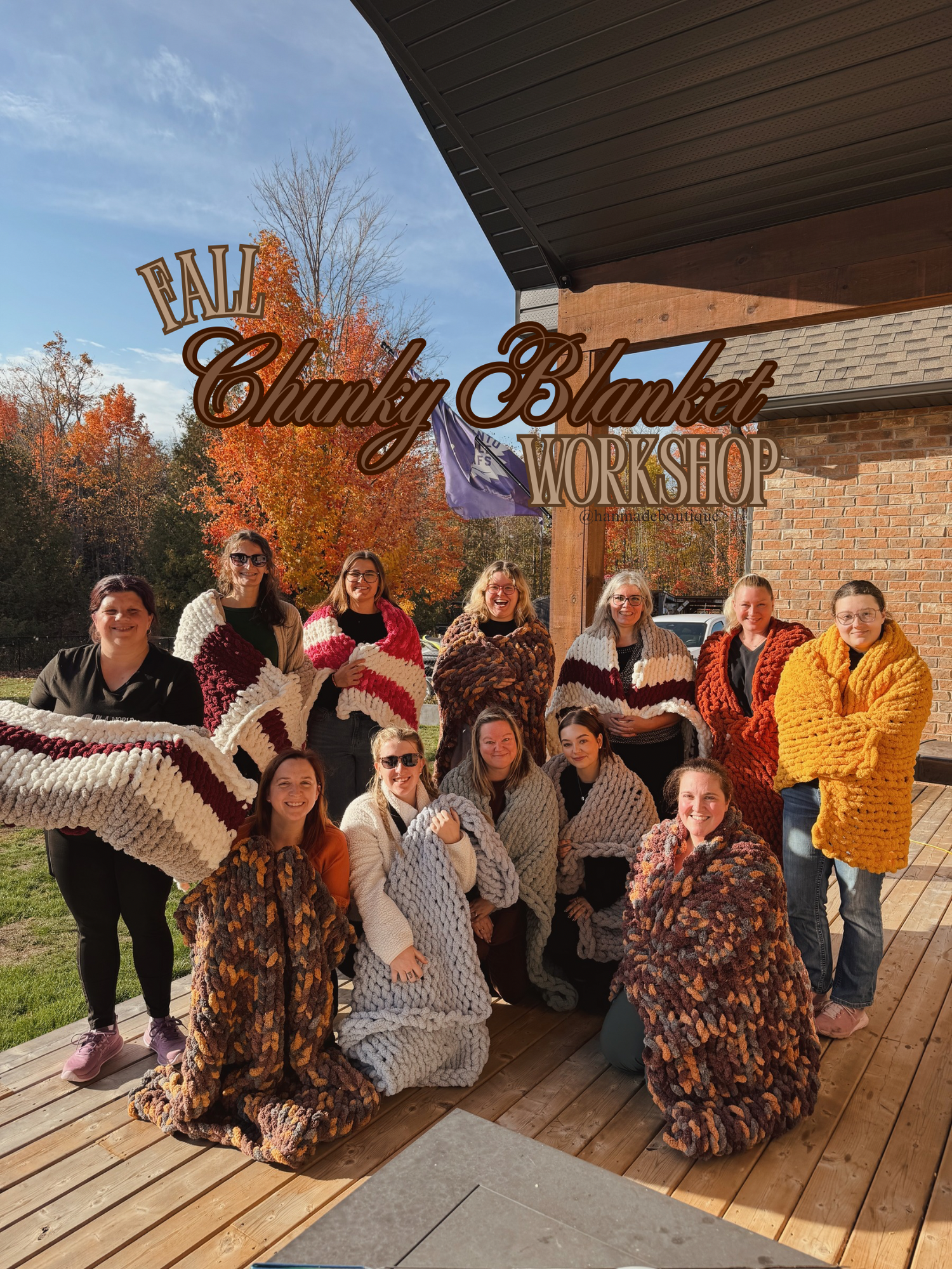 Our workshops are held on our 5 acre lot surrounded by nature in beautiful Trent Lakes! You will learn how to make your very own chunky blanket using my knowledge and techniques that I have developed over 5 years of creating chunky blankets and running my business! Click below for more information!